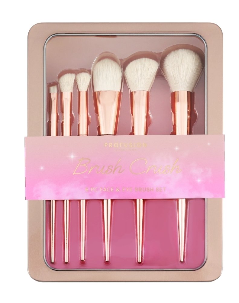 Meet the Brush Crush 6-Piece Face & Eye Brush Set, your must-have lineup for flawless glam. With ultra-soft, high-quality synthetic bristles, these vegan and cruelty-free brushes make blending seamless and application effortless.