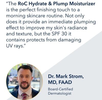 Over time, your natural Hyaluronic Acid levels decline, making the appearance of lines & wrinkles more pronounced. RoC’s new Hydrate + Plump Daily Moisturizer with SPF 30 helps to restore skin’s natural moisture, visibly replumping lines & replenishing hydration.