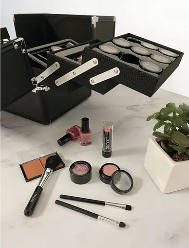This professional, re-usable case comes filled with cosmetics and accessories to make you look and feel beautiful. It all comes together in the professional beauty case which is perfect for storing or transporting all of your items. Contents: 1x Re-Usable Case, 18 x Single Eyeshadow Pots, 6 x Eyeshadow Compacts, 1 x Duo Blusher Compact, 1 x Duo Bronzing Powder, 4 x Lipsticks, 4 x Lip Gloss Pots, 4 x Nail Varnishes, 1x Lipliner pencil, 1 x Eyeliner Pencil, 1 x Toe Separator, 1 x Nail File, 1x Pair of Nail Clippers, 1 x Pair of Tweezers, 1 x Pair of Scissors, 1 x Cuticle Pusher, 1 x Cuticle Remover, 1 x Powder Brush, 1x Eyeshadow Brush, 1x Lip Brush, 1 x Eye Lash & Brow Comb.